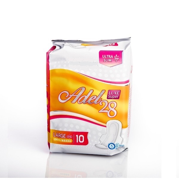 - Women‘s sanitary napkins ADEL 28 Large «5 капель» созданы для менструаций с высокой обильностью.