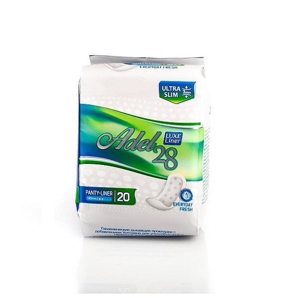 Прокладки Women’s sanitary napkins ADEL 28 Panty liner для ежедневного применения разработаны с учетом этих требований. В них имеется обеззараживающий хитозан и деликатная поверхность против раздражения. А клеевой слой с гипоаллергенным составом не оставляет следов на белье.