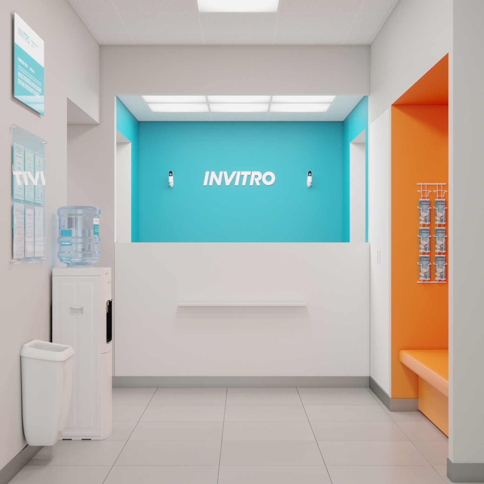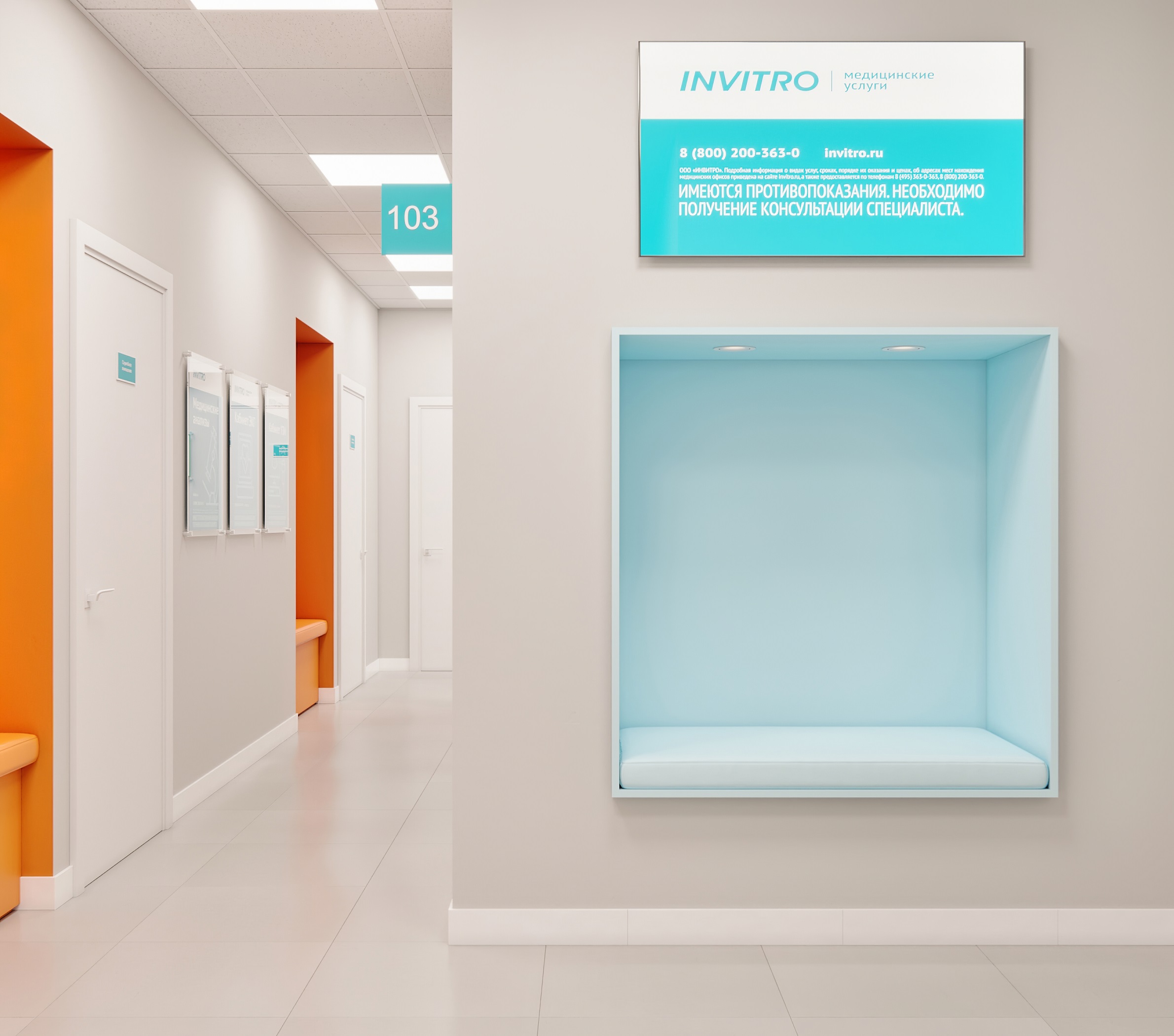 Главная задача новой концепции — эффективное использование пространства медицинских офисов. Проект построен на новом подходе к планировке. В обновленных офисах «Инвитро» функциональные процессы будут скомпонованы по зонам: рецепция, зона ожидания, процедурные кабинеты, кофе-поинты, детская зона. Медицинские кабинеты внутри также делятся на зоны.