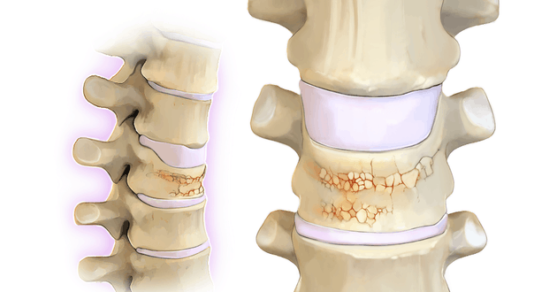 - Переломы позвонков на фоне остеопороза (снижения плотности костей). Остеопороз обычно развивается у женщин (в три раза чаще, чем у мужчин) в постклимактериальный период; причина – гормональные нарушения и общее снижение костной массы.