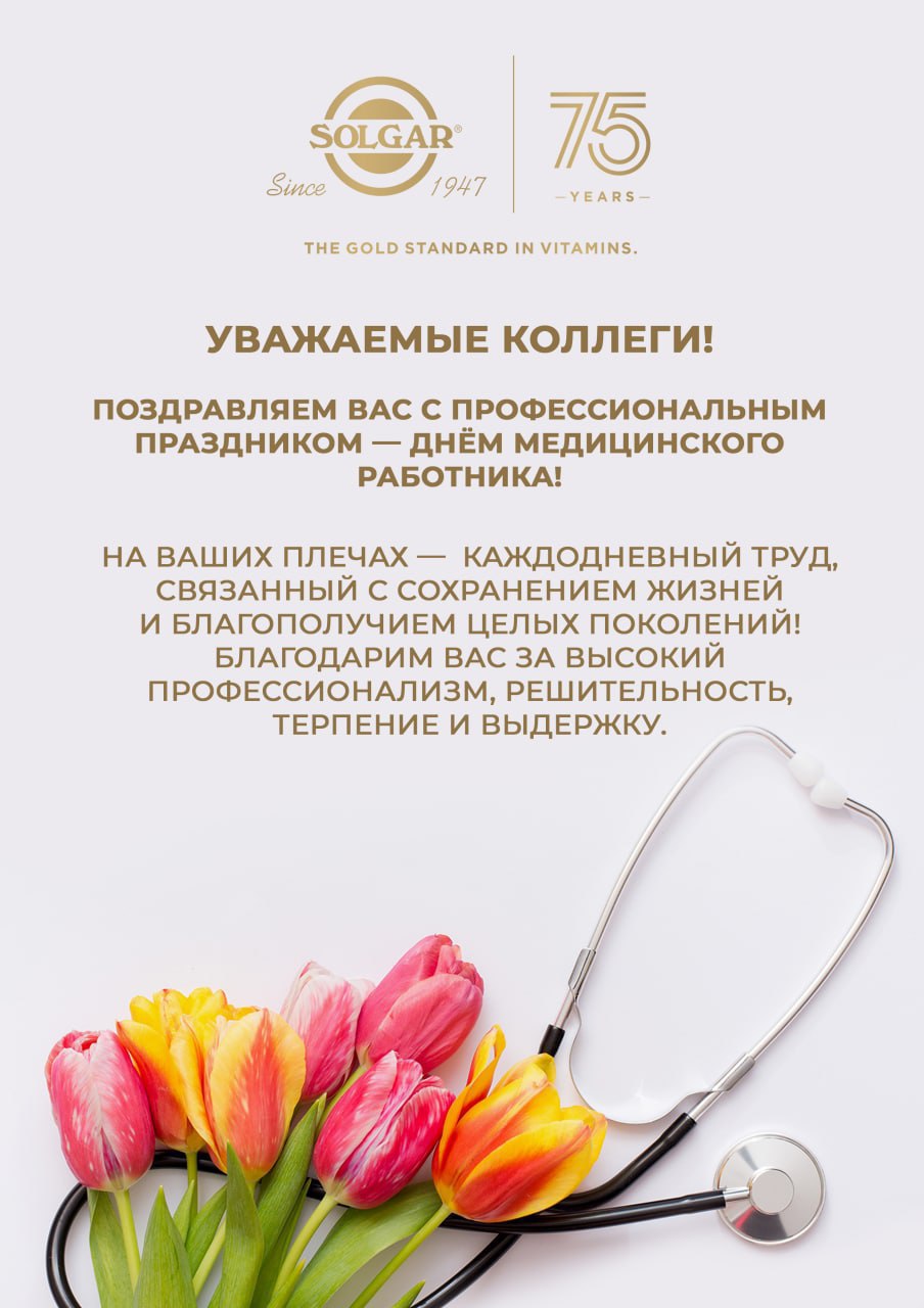 19 июня в России отмечается День медицинского работника. Этот праздник был учрежден Указом Президиума Верховного Совета СССР в 1980 году и с тех пор проходит ежегодно каждое третье воскресенье июня. Компания SOLGAR поздравляет с профессиональным праздником всех врачей, медсестер, фармацевтов, санитаров, научных сотрудников, работников «Скорой помощи» и благодарит за бесценный ежедневный вклад, преданность своему делу и самоотверженность, которые помогают изменить к лучшему жизни миллионов людей.