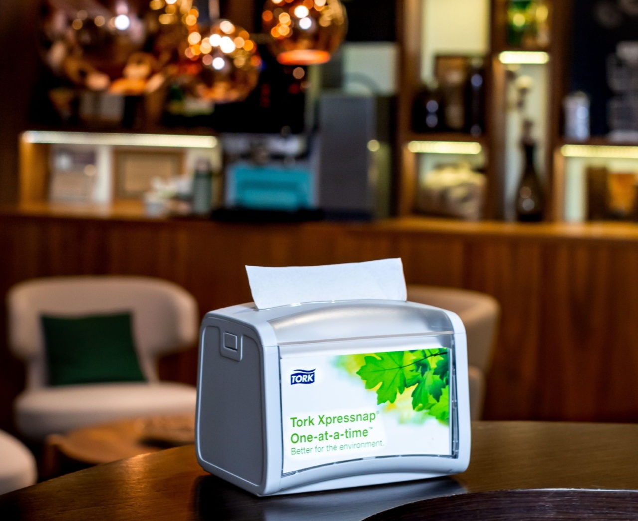 Здесь особенно выделяются диспенсерные салфетки Tork Xressnap® N4 (арт. 10844), ставшие настоящим бестселлером на российском рынке. Защищенные от грязи и пыли в закрытом диспенсере Tork Xressnap®, салфетки идеально подходят для ресторанов и других помещений для приема пищи: офисных столовых и кухонь, зоны раздачи в отелях, а также для организации кейтерингового обслуживания на мероприятиях. Салфетки производятся из локального переработанного сырья и отвечают высочайшим стандартам качества. Диспенсерная система Tork Xressnap® позволяет рационально использовать пространство на столах, экономить время персонала на уборку и сократить объем отходов.