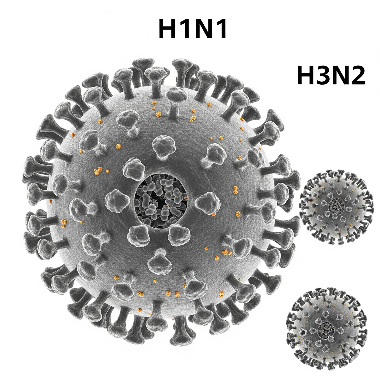Гонконгский грипп A (H3N2) и свиной грипп A (H1N1) остаются основными циркулирующими вариантами последних лет и вызывают локальные сезонные вспышки по всему миру. Клиника у них схожая: острое, почти «час в час» начало, высокая температура, выраженная интоксикация (головная и глазная боль, боли в мышцах, суставах и «ломота» в костях). Катаральные симптомы, такие как насморк, встречаются реже и менее типичны. Кашель — характерный признак, обычно усиливается на 2–3‑и сутки, становится частым, надсадным, мучительным, что связано с поражением трахеи (картина трахеита).