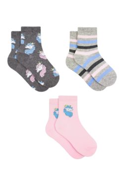 Носки детские для девочек, 3 пары, серый, белый, фуксия, арт. 997077805