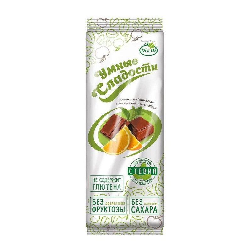 Плитка кондитерская шоколадная с апельсином, без сахара, на стевии.