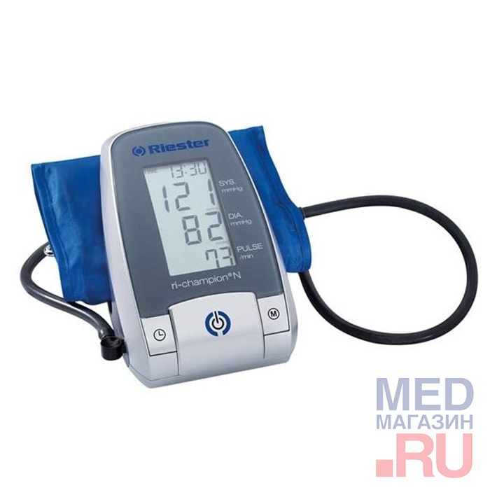Немецкий атоматический тонометр Riester Ri-champion клинически проверен и соответствует BHS – стандарту A/A. Он точен, прост и удобен в использовании, обладает малым весом и эргономическим дизайном. Аппарат имеет большой дисплей, что является немаловажным плюсом для пожилых людей, имеющих проблемы со зрением. Тонометр Ri champion оснащен звуковым и оптическим сигналом оповещения о состоянии пульса.