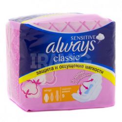 Прокладки Always classic sensitive normal – толстые классические гигиенические прокладки для чувствительной кожи.