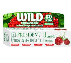 Детская зубная паста PRESIDENT Junior Wild Strawberry от 6 лет обеспечивает длительный и эффективный уход за молочными и постоянными зубами. Стимулирует процесс реминерализации, предотвращает разрушение эмали и развитие кариеса.