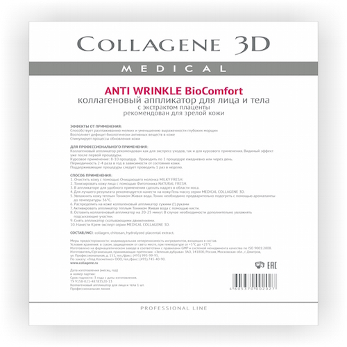 Покупайте Collagene 3D Аппликатор длч лица и тела BioComfort с плацентолью А4 (Collagene 3D, Anti Wrinkle) Россия онлайн с доставкой курьером по Москве, Санкт-Петербурге и России, а также в пунктах выдачи заказов.