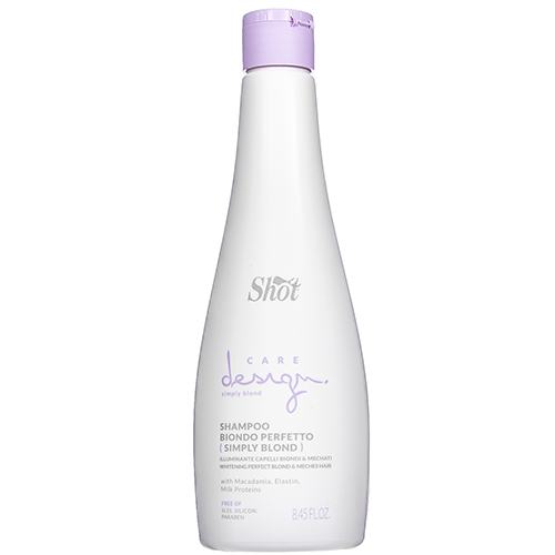 Шампунь Shot Care Design Simply Blond с кремовой текстурой специально разработан для осветленных и мелированных волос. Благодаря маслу макадамии, эластину и протеинам белка он питает и оживляет стержень волос, делая их увлажненными, эластичными, мягкими и блестящими. Нежная формула без SLES, силиконов и парабенов для максимально бережного отношения к структуре волос. Идеально подходит для частого использования и всех типов волос, даже для самых ломких и чувствительных.