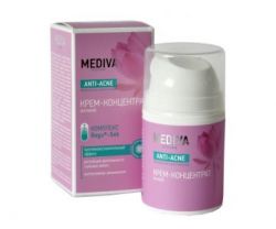 легкими массирующими движениями нанести небольшое количество крема на кожу не позднее, чем за 1 час до сна, через 15-20 мин излишки крема удалить салфеткой. Предварительно рекомендуется очистить кожу с помощью геля для умывания серии MEDIVA ANTI-ACNE.