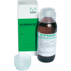 Слабительное средство. Нормазе оказывает гиперосмотическое, гипоаммониемическое, слабительное действие, стимулирует перистальтику кишечника, улучшает всасывание фосфатов и солей кальция. Под влиянием Нормазе происходит изменение флоры толстой кишки (увеличение количества лактобацилл), что приводит к повышению кислотности в просвете толстой кишки и стимулирует перистальтику. Наряду с этим увеличивается объем и происходит размягчение каловых масс. В результате Нормазе оказывает слабительный эффект, не влияя при этом непосредственно на слизистую оболочку и гладкую мускулатуру толстой кишки. Под действием препарата аммиак переходит из крови в кишечник, при этом уменьшается образование азотосодержащих токсических веществ в его проксимальном отделе и, соответственно, всасывание их в систему полой вены. Действие Нормазе может наступать быстро или быть отсроченным – через 24-48 ч.