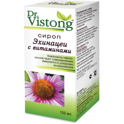 Сироп Эхинацеи с витаминами» серии «Dr. Vistong™» – это комплексный препарат на основе эхинацеи пурпурной и витаминов группы В. Компоненты сиропа не только способствуют повышению иммунитета, но и восполняют дефицит витаминов, необходимых для энергетического обмена и правильной работы всех органов и систем организма. Сироп не содержит сахара, что позволяет использовать его людям, страдающим диабетом