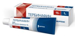 Противогрибковый препарат группы аллиламинов. Способен ингибировать фермент, который отвечает за распад сквалена. Данное вещество накапливается в клеточной мембране гриба, вызывая его гибель.