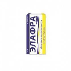 Элафра является базовым противоревматическим препаратом, модифицирующим течение болезни, с антипролиферативным действием. Активный метаболит лефлуномида – А771726 – ингибирует фермент дигидрооротатдегидрогеназу и обладает антипролиферативной активностью. А771726 in vitro тормозит вызванную митогенами пролиферацию и синтез ДНК Т-лимфоцитов. Антипролиферативная активность А771726 проявляется, по-видимому, на уровне биосинтеза пиримидина, поскольку добавление в клеточную культуру уридина устраняет тормозящее действие метаболита А771726. С использованием радиоизотопных лигандов показано, что А771726 избирательно связывается с ферментом дегидрооротат дегидрогеназой, чем объясняется его свойство тормозить этот фермент и пролиферацию лимфоцитов на стадии G1. Одновременно А771726 тормозит экспрессию рецепторов к интерлейкину-2 и антигенов ядра Ki-67 и PCNA, связанных с клеточным циклом. Терапевтическое действие лефлуномида было показано на нескольких экспериментальных моделях аутоиммунных заболеваний, включая ревматоидный артрит.