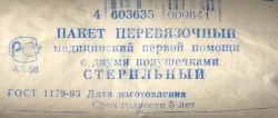 Обычно подушечки и бинт завернуты в вощеную бумагу и вложены в герметичный чехол из прорезиненной ткани, целлофана или пергаментной бумаги.