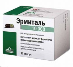 Ферментный препарат. Эрмиталь содержит стандартный высокоактивный панкреатин, полученный из поджелудочной железы свиньи в виде микротаблеток, резистентных к воздействию желудочного сока. Препарат восполняет дефицит ферментов поджелудочной железы, оказывает протеолитическое, амилолитическое и липолитическое действие. Входящие в его состав ферменты (липаза, альфа-амилаза, трипсин, химотрипсин) способствуют расщеплению белков до аминокислот, жиров – до глицерина и жирных кислот, крахмала – до декстринов и моносахаридов, улучшает функциональное состояние ЖКТ, нормализует процессы пищеварения.