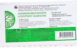 действующее вещество – аскорбиновая кислота – 50 мг в 1 мл или 100 мг в 2 мл раствора; вспомогательные вещества: натрия гидрокарбонат, натрия сульфит безводный, вода для инъекций.