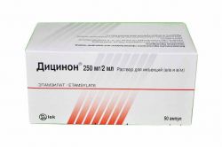 Гемостатическое средство; оказывает также ангиопротекторное и проагрегантное действие. Стимулирует образование тромбоцитов и их выход из костного мозга. Гемостатическому действию обусловленому активацией формирования тромбопластина в месте повреждения мелких сосудов и снижением образования в эндотелии сосудов простациклина способствует повышению адгезии и агрегации тромбоцитов, что, в конечном счете, приводит к остановке или уменьшению кровоточивости. Увеличивает скорость образования первичного тромба и усиливает его ретракцию, практически не влияет на уровень фибриногена и протромбиновое время. Дозы более 2-10 мг/кг не приводят к большей выраженности эффекта. При повторных введениях тромбообразование усиливается. Обладая антигиалуронидазной активностью и стабилизируя аскорбиновую кислоту, препятствует разрушению и способствует образованию в стенке капилляров мукополисахаридов с большой молекулярной массой, повышает резистентность капилляров, снижает их хрупкость, нормализует проницаемость последних при патологических процесса. Уменьшает выход жидкости и диапедез форменных элементов крови из сосудистого русла, улучшает микроциркуляцию. Не обладает гиперкоагуляционными свойствами, не способствует тромбообразованию, не оказывает сосудосуживающего действия. Восстанавливает патологически измененное время кровотечения. На нормальные параметры системы гемостаза не влияет. Гемостатический эффект при в/в введении этамзилата наступает через 5-15 мин, максимальный эффект проявляется через 1-2 ч. Действие продолжается в течение 4-6 ч, затем в течение 24 ч постепенно ослабевает; при в/м введении эффект наступает несколько медленнее. При приеме внутрь максимальное действие наблюдается через 2-4 ч. После курсового лечения эффект сохраняется в течение 5-8 суток, постепенно ослабевая.