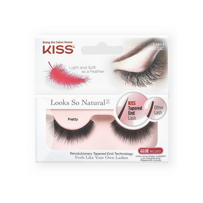 Kiss Looks so Natural Накладные ресницы Eyelashes Pretty – идеальная модель для тех, кто любит густые и объемные ресницы, подходящая для романтических свиданий и выхода в свет. Ресницы изготовлены из высококачественных материалов и совершенно не ощущаются на глазах. Они имеют заостренные кончики и по форме максимально приближены к натуральным ресницам, что гарантирует естественный результат. Протестировано и одобрено офтальмологами. Подходят для многоразового использования, а также для тех, кто носит контактные линзы. Снятие ресниц не требует дополнительных средств: просто приложите ватный диск с теплой водой и снимите ресницы. Состав набора: пара накладных ресниц и клей 1g.