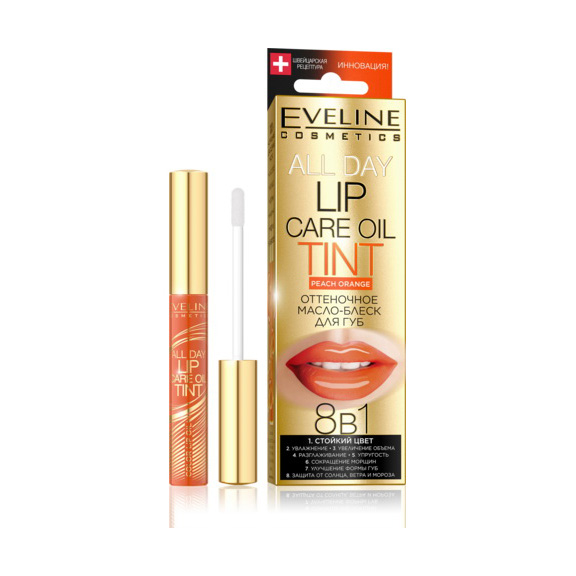Оттеночное масло-блеск для губ Eveline 8в1 All Day Lip Care Oil Tint-Orange, 7 мл