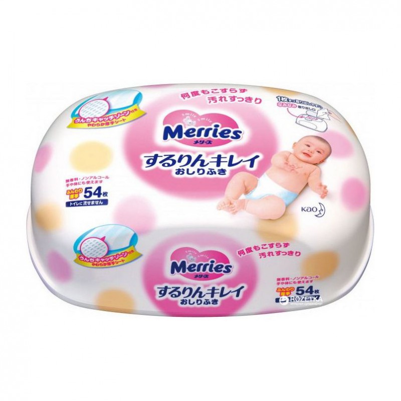 Салфетки влажные Merries пластиковый контейнер 54шт