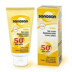 Крем Sanosan – идеальная защита от прямых солнечных лучей. Он надежно защищает кожу человека от обгорания благодаря фактору SPF 50+. Благодаря содержанию экстракта Алоэ Вера, пантенолу и витамину Е предотвращает сухость и увлажняет кожу. Аллергических реакций не обнаружено.