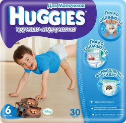 Трусики Huggies (Хаггис) легко снять и надеть аккуратно и быстро, не раздевая ребенка полностьюи не важно, чем он занят: спит, играет или просто чем-нибудь увлечен. Трусики – подгузники Хаггис идеально сидят на малыше, и благодаря эластичным боковинкам и мягкому пояску не сползают при движениях, не натирают нежную детскую кожу. Несмотря на то, что трусики Huggies (Хаггис) тоньше и удобней обычного подгузника, они очень хорошо впитывают – до 0,5 литра жидкости — и даже могут использоваться во время сна. Забавные картинки с диснеевскими персонажами на передней части подгузника Хаггис непременно порадуют Ваших малышей!
