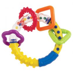 Эту погремушку легко и удобно держать в маленьких ручках. Разнообразные формы и цвета стимулируют ребенка играть и способствуют его развитию. Погремушка знакомит малыша с миром звуков, движения и красивых цветов. Игрушка изготовлена из прочных и безопасных материалов без острых краев.