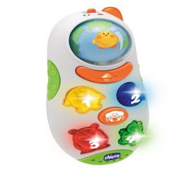 Говорящая игрушка в виде мобильного телефона помогает ребенку узнать первые слова в увлекательной игровой форме. При нажатии на кнопки звучат названия цифр, голоса животных или веселая мелодия.