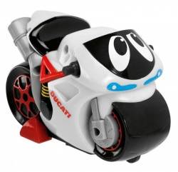 Турбо-мотоцикл Chicco Ducati. Этот мотоцикл идеален для маленьких любителей двухколесных игрушек. Подобно настоящему Ducati он приезжает первым: просто нажми на заднюю часть секции с сиденьем и он увеличит число оборотов, разгонится, мотор заревет и затем раздастся визг тормозов и мотоцикл остановится.