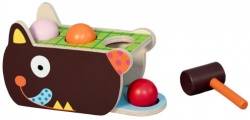 Наш волчонок всегда голоден! Ваш малыш может ему помочь! Чтобы «покормить» волка, необходимо разложить разноцветные шарики по спинке и несколько раз ударить по ним молоточком – шарики выкатятся прямо на длинный синий язык! Прекрасная игра для развития координации и мелкой моторики!