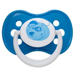 Высококачественная пустышка из латекса с круглой соской и традиционным ограничителем. У нее есть необходимые отверстия для вентиляции.
