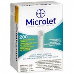 Ланцеты Bayer Microlet № 200 предназначены для прокалывания пальца при заборе крови для анализа сахара в крови.