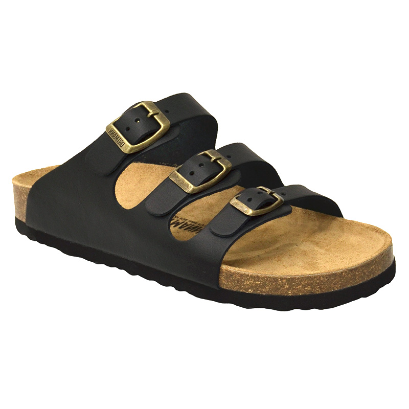 Стелька сандалий несъемная, выполнена из композитного материала на основе натуральной пробки (крошка коры пробкового дуба), отличается гибкостью и прочностью. Верх выполнен из натуральной кожи, поверхность стельки выполнена из мягкой велюровой кожи, не вызывает аллергии. Легкая рифленая подошва из полиуретана не скользит, обеспечивает дополнительную безопасность при ходьбе.