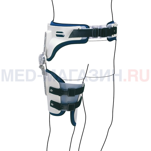- Мультиосевой шарнир шарнир позволяет задать требуемый угол сгибания/разгибания или установить необходимый диапазон движений в тазобедренном суставе;