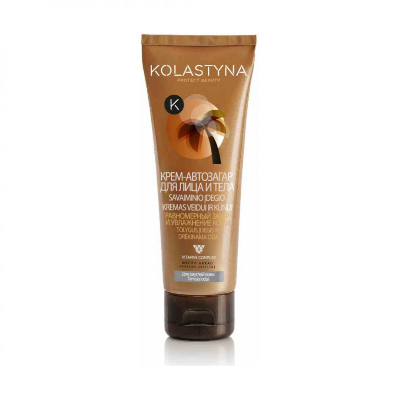 Равномерный стойкий загар без пятен и полос благодаря формуле, которая легко наносится и быстро впитывается! Обогащенные витаминным комплексом и кокосовым маслом, средства Kolastyna для автозагара увлажняют Вашу кожу, делают ее гладкой, а также защищают от преждевременного старения. Применение -равномерно наносить на чистую кожу, бережно массируя. Чтобы избежать загрязнения одежды, рекомендуется подождать 30 минут и тщательно вымыть руки.