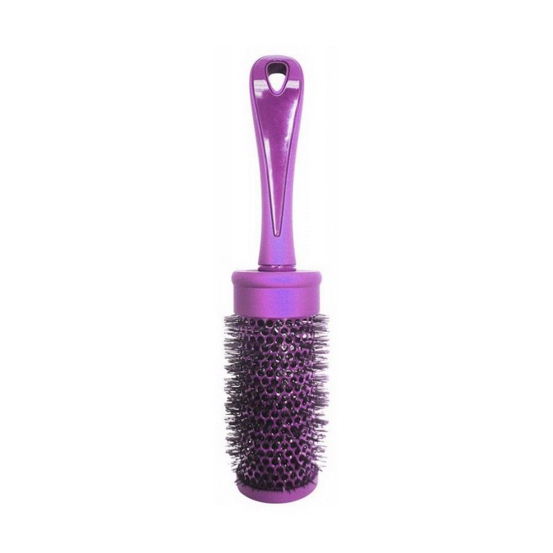Большая щетка брашинг с искусственной щетиной подходит для укладки феном всех типов волос, создания прикорневого объема, а также для выпрямления волос и, напротив, накрутки крупных локонов. Корпус из стали и удобная ручка из легкого безопасного пластика с отверстием для подвешивания комфортны в использовании. Брашинг выполнен в ярко синем и фиолетовом цвете.