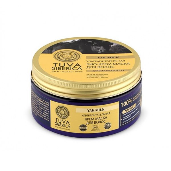 Ультрапитательная крем-маска для волос на основе молока тувинского яка и кедрового масла обеспечивает усиленное питание и увлажнение волос, восстанавливает их структуру изнутри и стимулирует рост, делает волосы мягкими и шелковистыми, не утяжеляя их. Молоко тувинского яка почти в два раза жирнее коровьего, это уникальный источник белка, витаминов и аминокислот. Кедровое масло богато липидами, углеводами, фосфатидами, витаминами, эфирными маслами и биологически активными веществами. Это рекордсмен среди масел по содержанию витамина Е – природного антиоксиданта.
