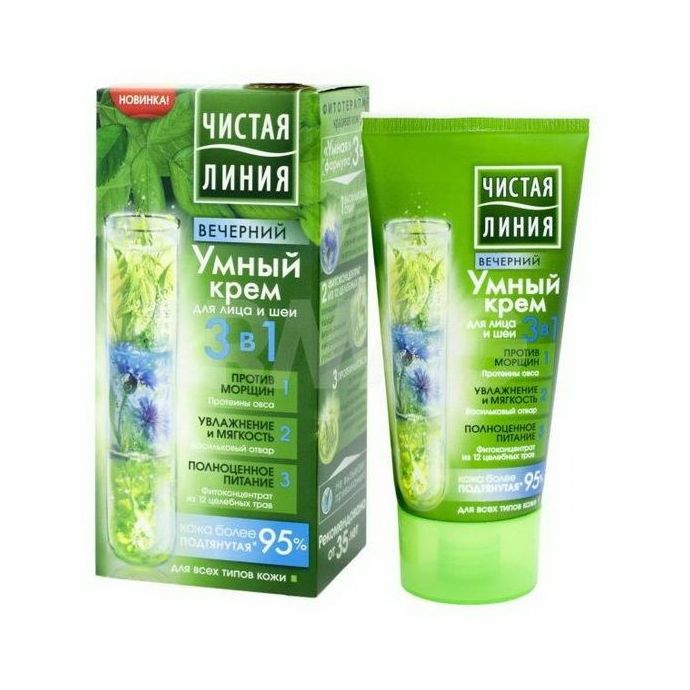 Умный крем для лица и шеи 3 в 1 вечерний Чистая Линия – “”Умная”” формула кремов обеспечивает коже питание и увлажнение в необходимом количестве и в доступной форме.
