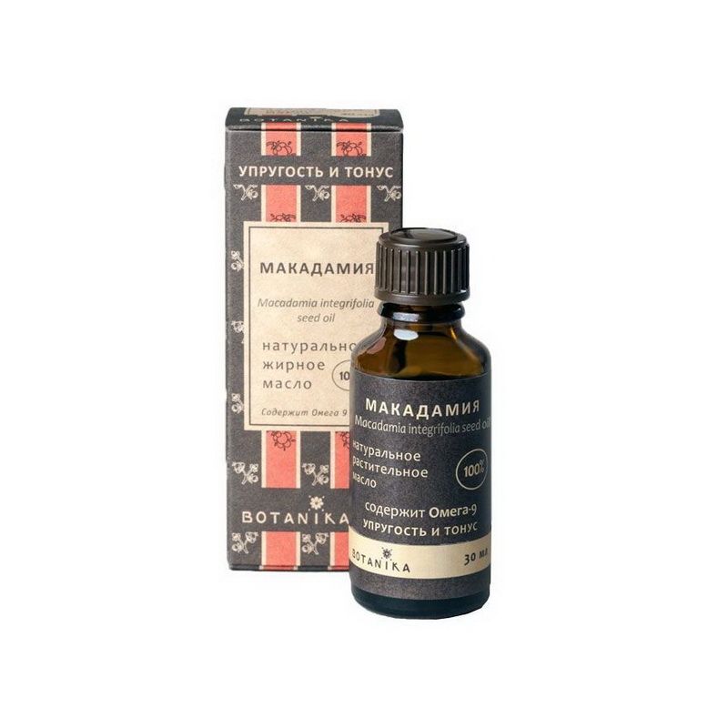 Натуральное 100% жирное масло Botanika “”Макадамия”” – благородное масло. По составу близко к маслам, добываемым из морских млекопитающих (спермацету). Мгновенно впитывается. Устраняет раздражение, шелушение. Восстанавливает мягкость и нежность кожи. Масло из плодов этого растения отличается большим содержанием пальмитолеиновой кислоты (palmitoleic acid), мононенасыщенной кислотой, которая способствует восстановлению кожного покрова, особенно при увядающей коже. Быстро впитывается, не оставляя масляный след. Одно из лучших средств для стареющей кожи – восстанавливает, тонизирует, смягчает, увлажняет. Можно использовать для сухой, обезвоженной кожи, а также при ожогах. Также, масло макадамии рекомендуется для ухода за волосами. Оно хорошо распределяется по поверхности волос и делает их более здоровыми. При этом выравниваются структурные различия между корневой частью и кончиками волос. Характеристики: