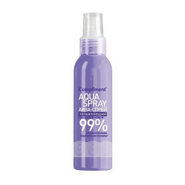 Аква-спрей содержит чистую гиалуроновую кислоту, благодаря которой «утоляет жажду» кожи и удерживает влагу в ее верхних слоях, не давая испаряться. Способствует восстановлению поврежденных тканей. Незаменим для ухода за кожей в жаркое время года. Особенно рекомендуется для зрелой, сухой и обезвоженной кожи.