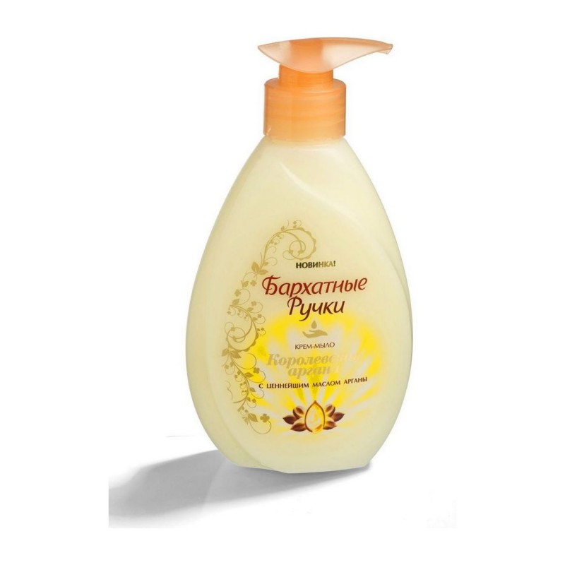 Крем-мыло “Королевская аргана” Нежнейшее крем-мыло для рук БАРХАТНЫЕ РУЧКИ “Королевская аргана” не только мягко очищает, но и бережно ухаживает за кожей рук, обеспечивая двойной эффект: – Образует дышащую пленку – Способствует восстановлению барьерной функции