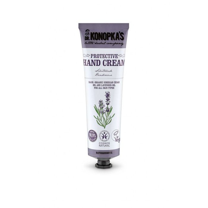 Защитный сертифицированный натуральный крем для рук основан на рецепте Доктора Конопка для всех типов кожи.