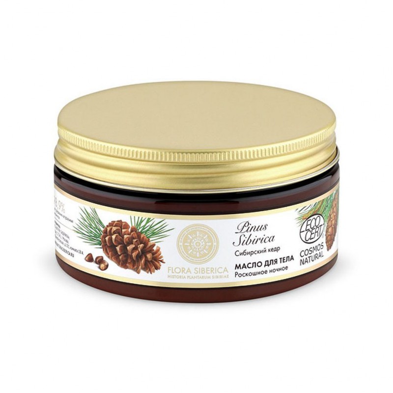Роскошное ночное масло для тела глубоко питает кожу, придавая ей невероятную гладкость и эластичность, сохраняет молодость кожи, даря удивительную нежность и шелковистость. Сибирский кедр — природный страж красоты и здоровья кожи, он содержит уникальную комбинацию смол и эфирных масел, аминокислот и витаминов A, E, D, которые глубоко питают и эффективно смягчают кожу, обеспечивая шелковистость и сияние. Помогают сохранить и приумножить красоту и здоровье кожи.