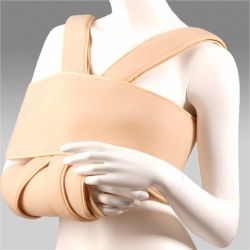 Повязка состоит из трех частей: манжеты, которой фиксируется предплечье, крестообразно расположенных лент с застежкой «велкро», фиксирующих конечность в согнутом положении (угол в локтевом суставе 90 градусов) и широкой ленты, обеспечивающей фиксацию конечности к торсу.