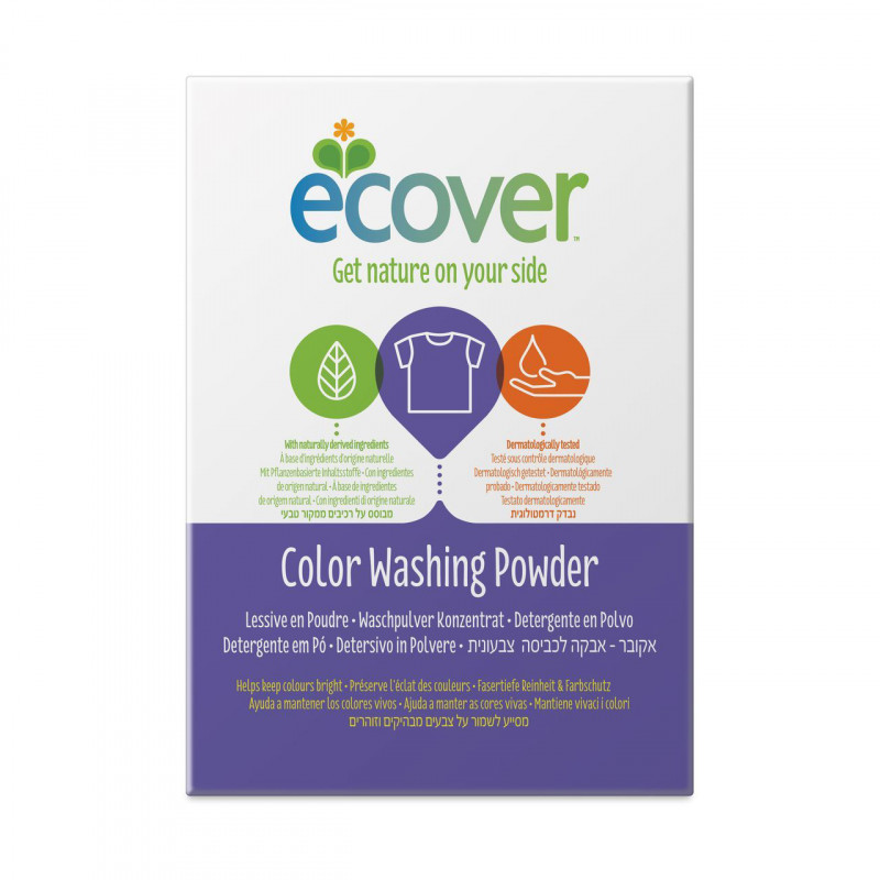 Очень эффективный стиральный порошок-концентрат “”Ecover”” предназначен для стирки цветного белья. Подходит к использованию для детей от 2-х лет и взрослых. Порошок создан на основе растительных ПАВ. Улучшенная формула содержит небольшое количество бережного кислородного отбеливателя для удаления таких загрязнений как пятна от вина, фруктов, травы и т.д. Прекрасно выполаскивается. Новая формула средства позволяет использовать меньше порошка и обеспечивает на 25% больше стирок! При машинной стирке не требуется добавление средств для смягчения воды и предотвращения образования накипи (типа Calgon). Обладает легким натуральным ароматом. Не содержит фосфатов и синтетических ароматизаторов. Содержит энзимы (не ГМО) и натуральный кислородный отбеливатель.