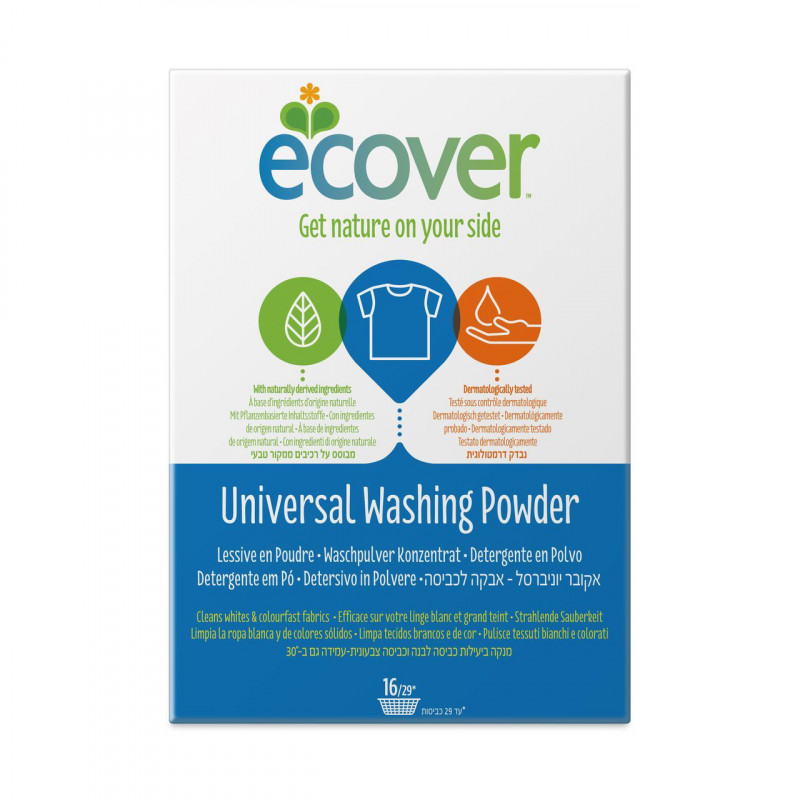 Очень эффективный универсальный порошок-концентрат “”Ecover”” предназначен для стирки белого и нелиняющего цветного белья. Подходит к использованию для детей от 2-х лет и взрослых. Порошок создан на основе растительных ПАВ. Улучшенная формула содержит небольшое количество бережного кислородного отбеливателя для удаления таких загрязнений как пятна от вина, фруктов, травы и т.д. Прекрасно выполаскивается. Экономичный концентрат – новая формула средства позволяет использовать меньше порошка и обеспечивает на 25% больше стирок! При машинной стирке не требуется добавление средств для смягчения воды и предотвращения образования накипи (типа Calgon). Обладает легким натуральным ароматом. Не содержит фосфатов и синтетических ароматизаторов. Содержит энзимы (не ГМО) и натуральный кислородный отбеливатель. Подходит для использования в домах с автономной канализацией. Не наносит вреда любым видам септиков! Характеристики: