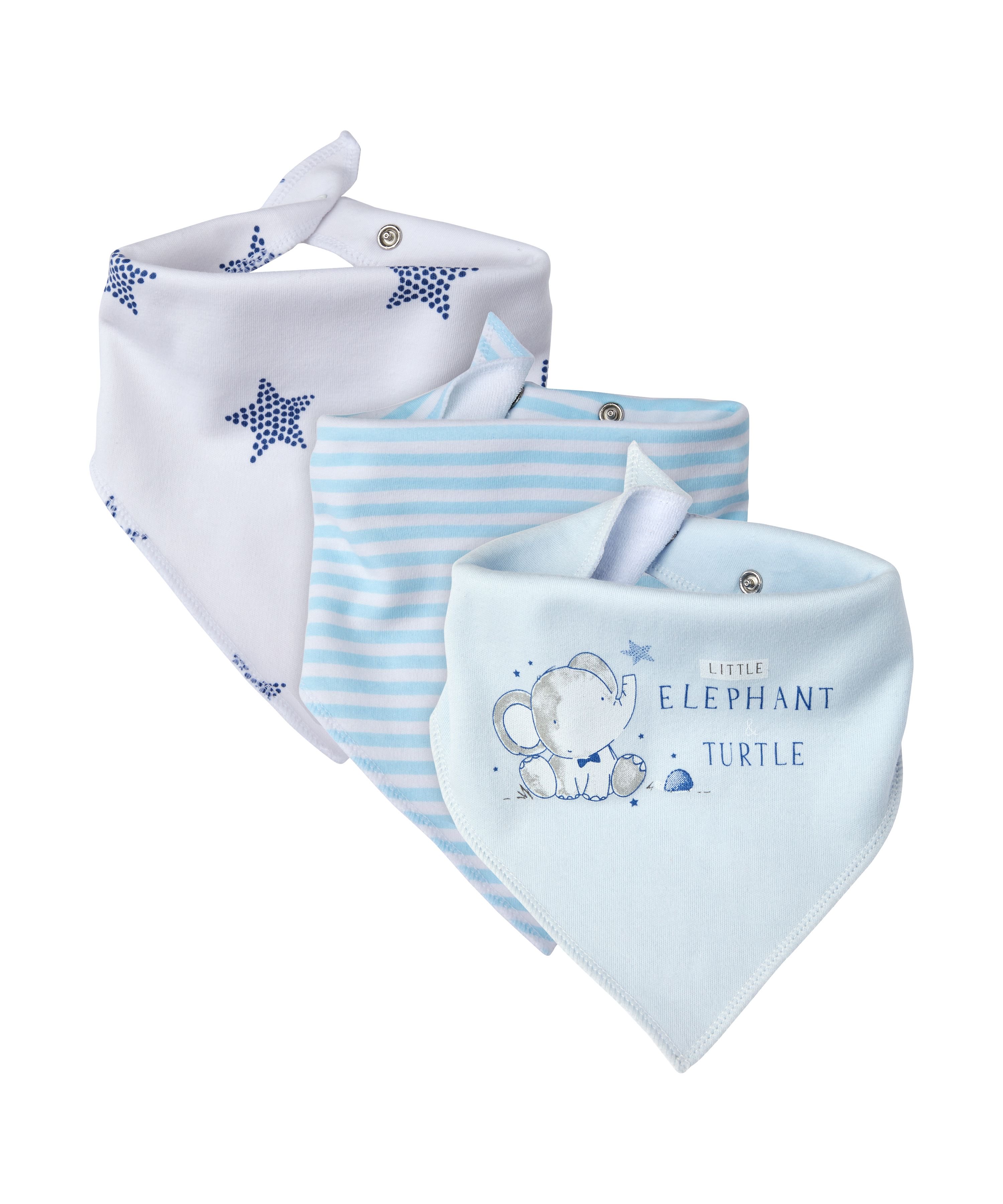 Купить Слюнявчики-банданы «Слоненок», 3 шт., голубой и белый, арт. 4881801 онлайн с доставкой курьером по Москве, Санкт-Петербурге и России.