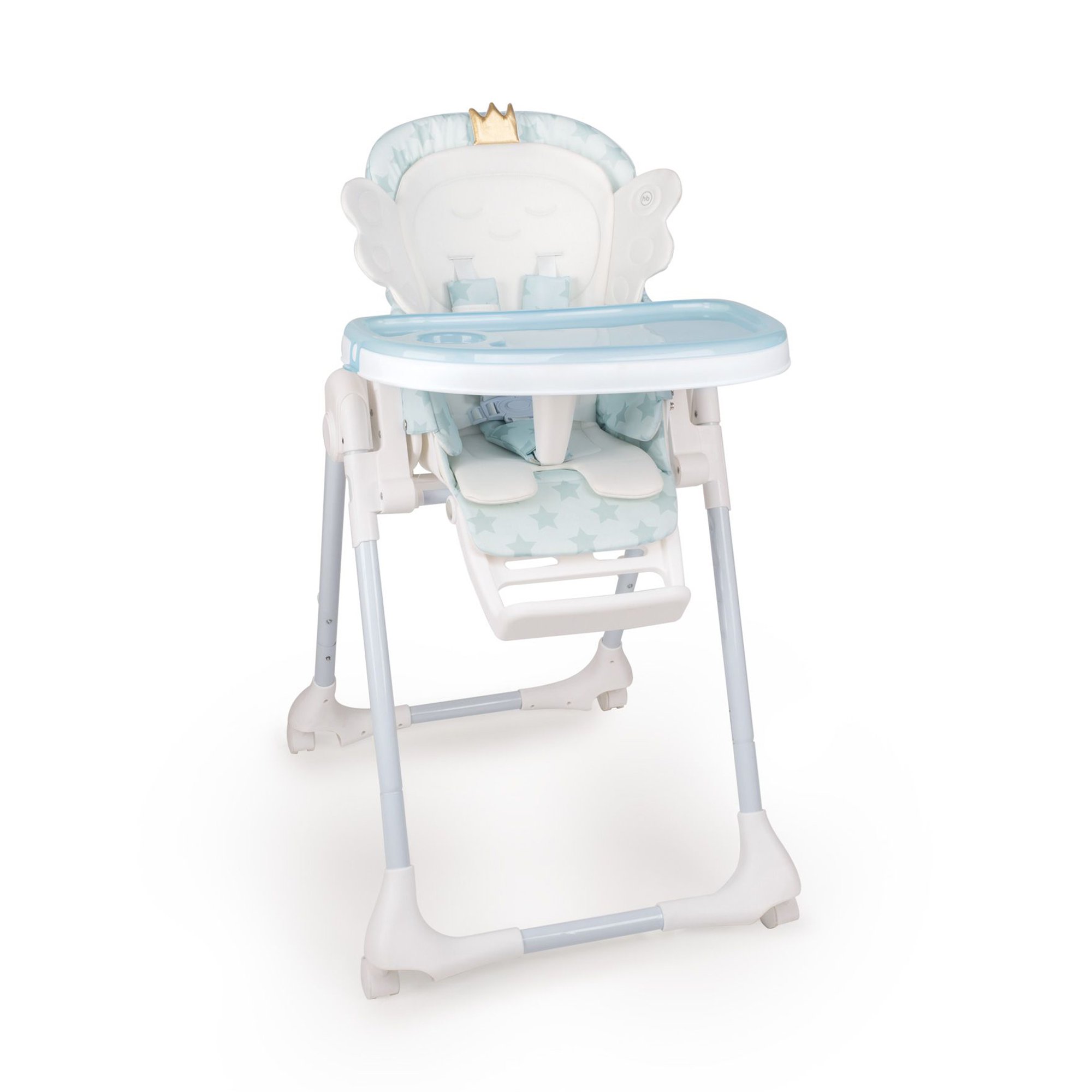Стульчик для кормления WINGY сочетает в себе креативный дизайн и отличный функционал. Стильный дизайн стульчика WINGY создаст позитивную атмосферу на любой кухне, а благодаря особенной форме матрасика в виде крылышек, вы сможете делать незабываемые фотографии вашего малыша для Instagram или семейного альбома. Удобная столешница регулируется в 3-х положениях и имеет съемный поднос, что позволяет быстро очистить поверхность столешницы во время еды. Стульчик WINGY имеет 8 положений по высоте и подножку, которую можно регулировать в 3-х положениях. Для удобства малыша стульчик оснащен разделителем для ножек, водоотталкивающим чехлом, который легко снимается и просто стирается, 5-точечными ремнями безопасности. Четыре поворотных колесика с возможностью фиксации позволяют легко перемещать стульчик по квартире. Также стульчик имеет возможность стоять без опоры в сложенном виде и не занимает много места. Стульчик имеет 5 положений наклона спинки, включая горизонтальное (положение шезлонга). Простота и надежность конструкции позволяют быстро его складывать и раскладывать, а продуманная система фиксации столешницы не даст малышу случайно скинуть ее ножками.